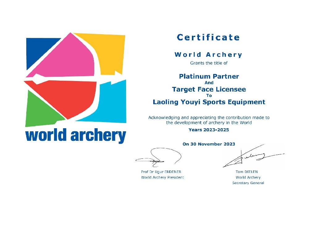 國際射箭聯合會-白金合作伙伴、國際射箭聯合會認證器材、中國射箭協會審定器材